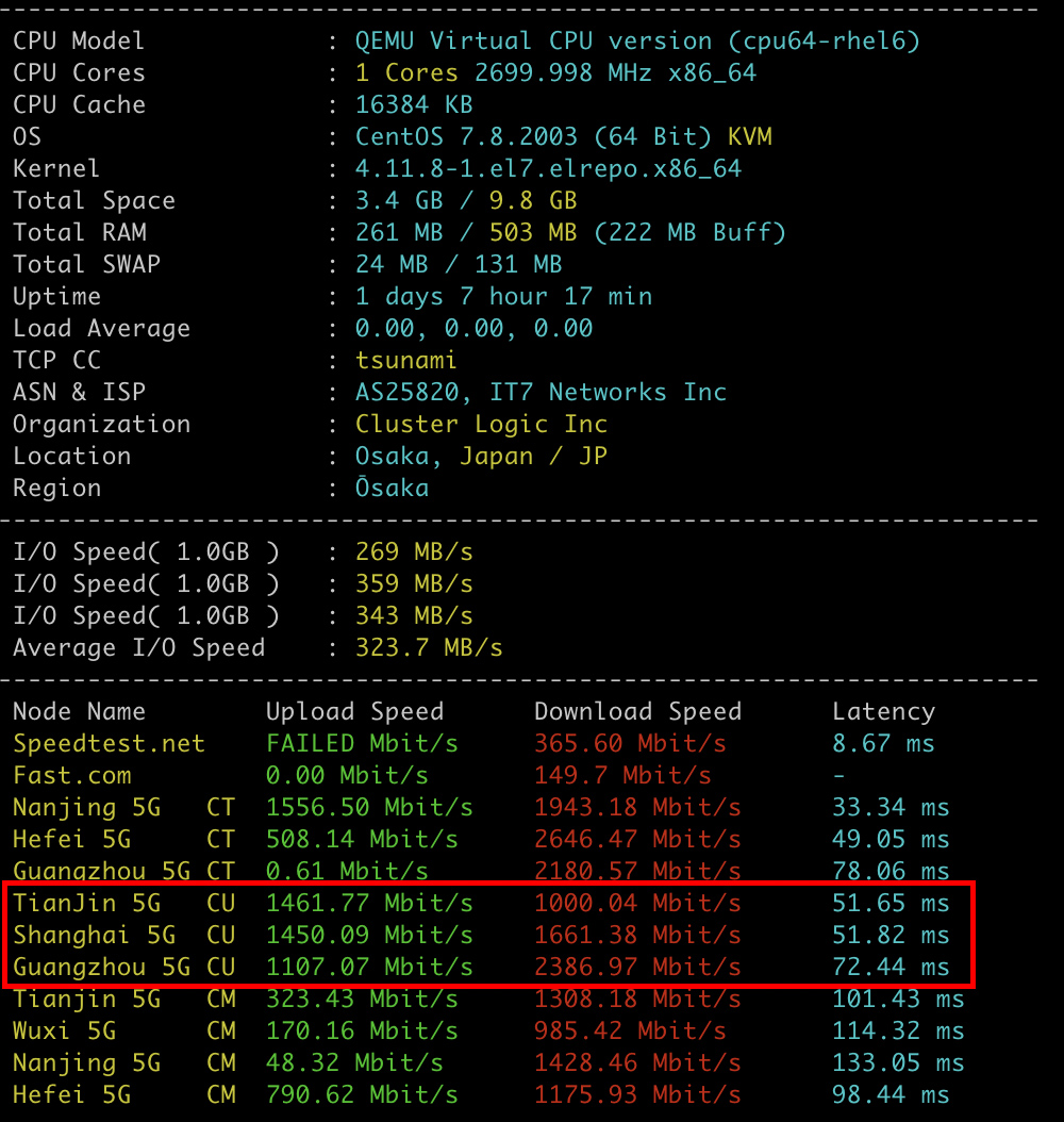 夏夜星瞳 发表于 2021-1-14 04:43 看来瓦工还是稳啊,可能这也跟所处的地域有关吧 我这里一直走的都是北京联通,小鸡是100M的口子 fast.com ...